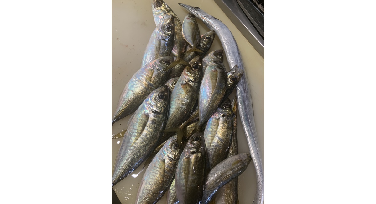 今朝獲れ 活〆真あじ 太刀魚 カマスです。
